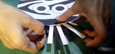 * Zebra Head & Body: Take 2 large disposable plate, trim the edges of one disposable plate to make it smaller. Trace the disposable plates on a printed zebra animal patterns. Cut the patterns.